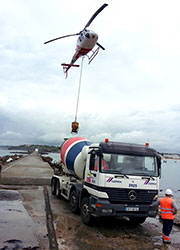 Oprava stupňů* mořské hráze Artha, ležící uprostřed zálivu, si vyžádala komplikované práce, jež byly skutečným „závodem s časem“ a probíhaly pouze v době, kdy to umožňoval vítr, příliv a déšť. Použit byl CXB Hyperfluide C35/45 XS3 Dmax 10 S4, „podvodní“ beton na míru. Instalace bednění a lití probíhalo denně během 4-5h časového okna mezi přílivy. Realizační tým (tucet zedníků a námořníků z odboru pro námořnictví a rybářství (Maritime and Fishing)) dojížděl na stavbu člunem, materiály spouštěla helikoptéra vzlétající z heliportu v pevnosti Socoa. Přípravné práce byly závodem s časem. Beton bylo nutné lít přesně o 2 hodiny později, aby ztuhl, než přijde další příliv. V této fázi nesměly autodomíchávače z výrobního závodu CEMEX v Saint-Jean-de-Luz ztratit ani minutu: helikoptéra na ně čekala. Naplánováno bylo dvacet dvou až tří minutových střídání. V rámci této první etapy prací dodal CEMEX 80 m3 tekuté betonové směsi s použitím tří rotačních shrnovacích kotoučů.