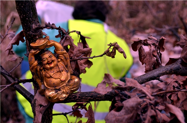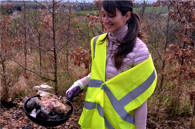 Skupina statečných dobrovolníků a bojovníků za čistou přírodu z řad našich zaměstnanců a externích zájemců se vydala v pátek 13. dubna uklízet přírodu v okolí stanice metra Nové Butovice a poblíž Prokopského potoka. Během chvíle se nám začaly plnit pytle nejrozličnějším odpadem. Našli jsme třeba celé vyhozené odpadkové koše z domácností, oblečení, koberce, plastové úlomky sportovních výbav, plastová potrubí, plechovky atd. A také spoustu kuriozit, například přepravku na domácí zvířata, vyhozenou sošku Buddhy, kosmetickou taštičku s příslušenstvím, staré značkové kabelky, pánvičku atp.