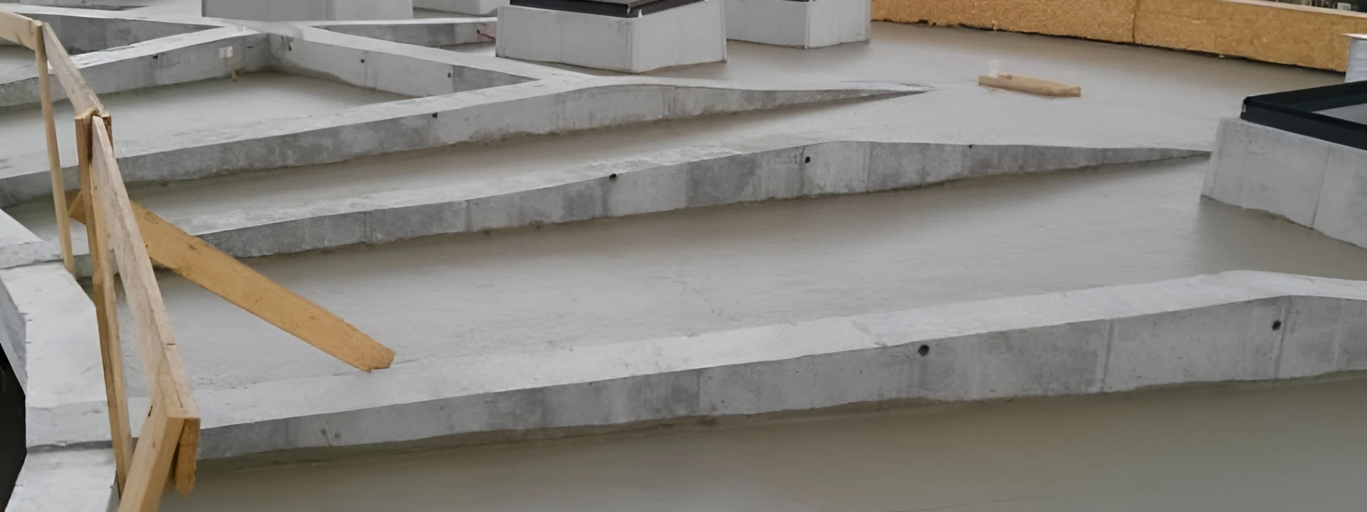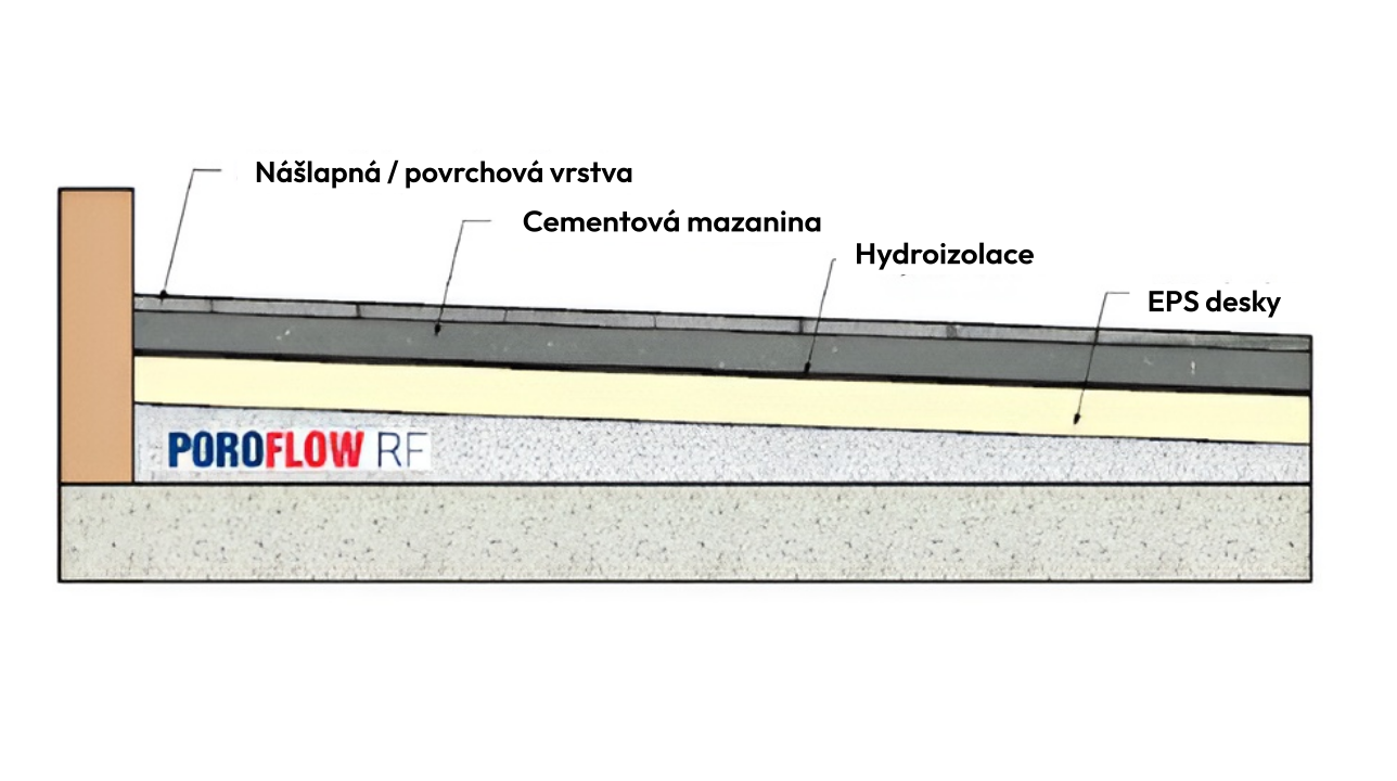 Poroflow RF značně zjednodušuje skladbu střešní konstrukce, skladby s Poroflow RF obsahují rovnoměrně silnou vrstvu primární tepelné izolace a tedy neobsahují na míru vyráběné polystyrenové desky se spádovým klínem. Instalace tepelné izolace je tak daleko jednodušší a rychlejší. Poroflow zalije všechny nerovnosti nosného stropu (např. panely) vytvoří požadovaný spád a zároveň tepelně izoluje. Světlíky, prostupy komínů a případné instalační rozvody nepředstavují pro tvarově přizpůsobivý pěnobeton Poroflow RF žádný problém.