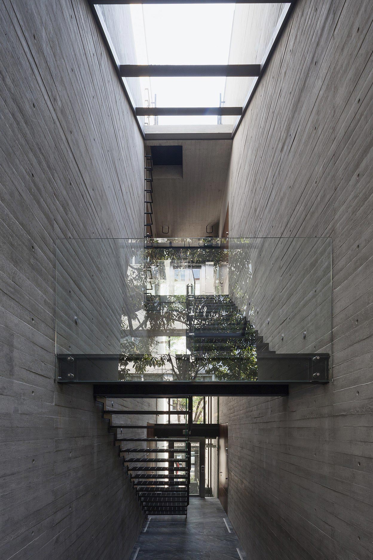 "On this project we wanted to move away from the common practice of making apartments on a single floor, so we decided to make two completely independent blocks, and develop two-story apartments that work like four houses inside one building," says Sonny Sutton, lead architect for the project.