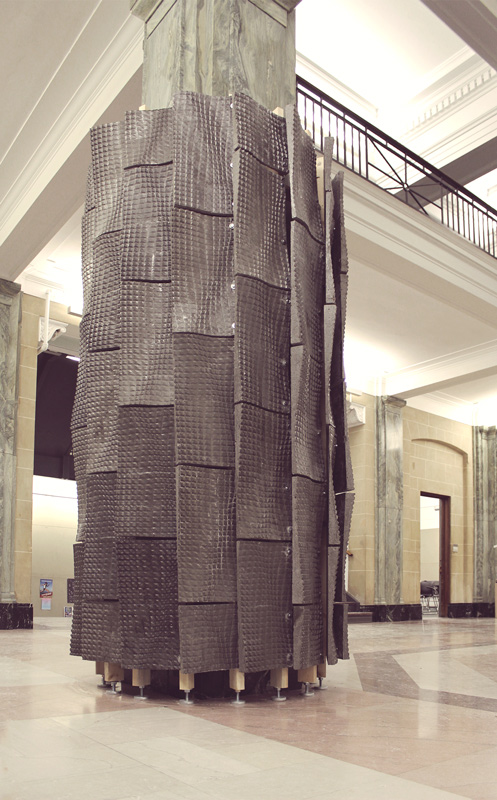 The interactions between CEMEX engineers and the architects led to the design, molding, and execution of the tiles, which were then drilled and mounted on a wooden frame to create the tower that was constructed around an existing column.