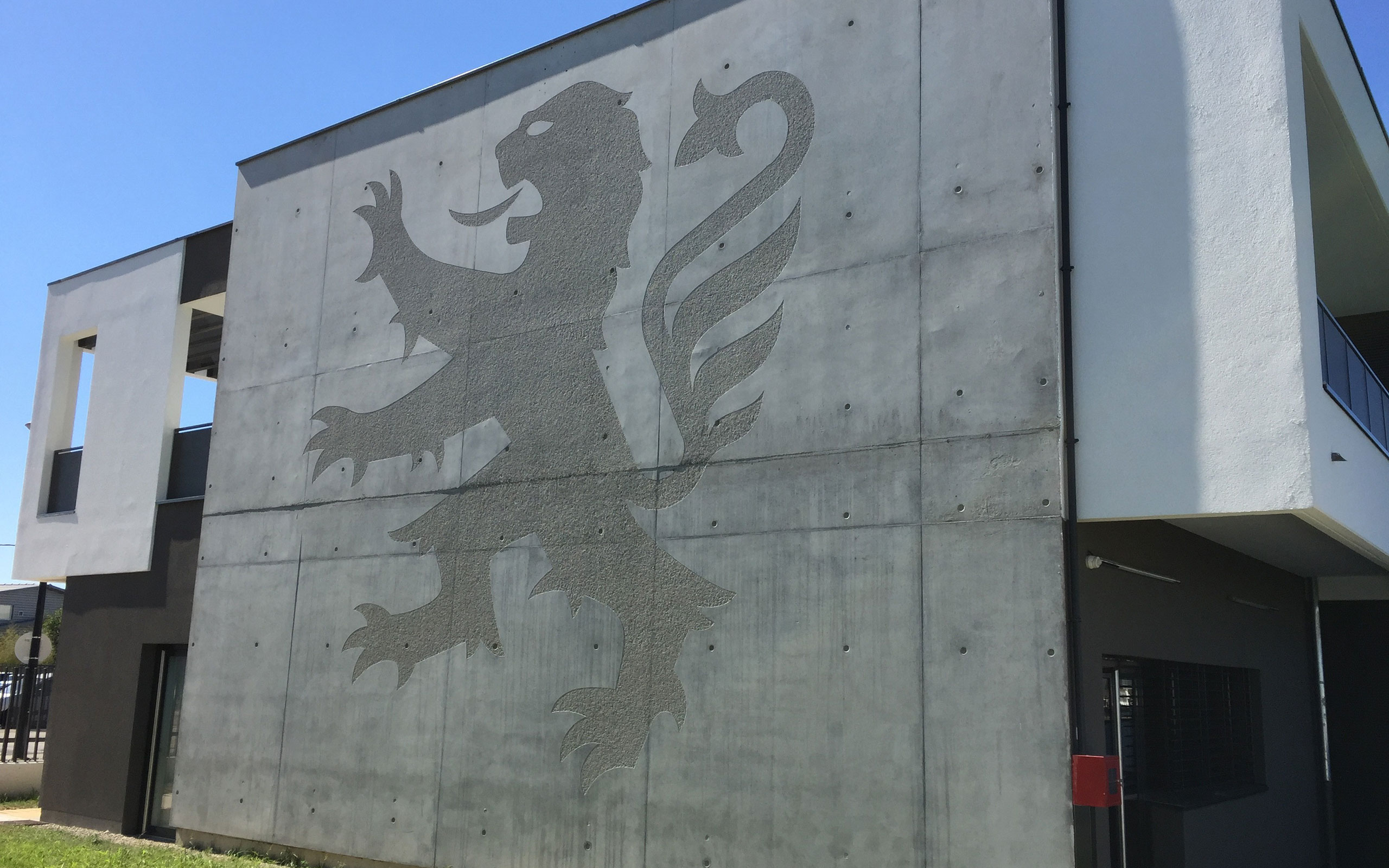 France’s Olympique Lyonnais Lion Stands Tall in Bush-hammered Concrete - France’s Olympique Lyonnais Lion Stands Tall in Bush-hammered Concrete