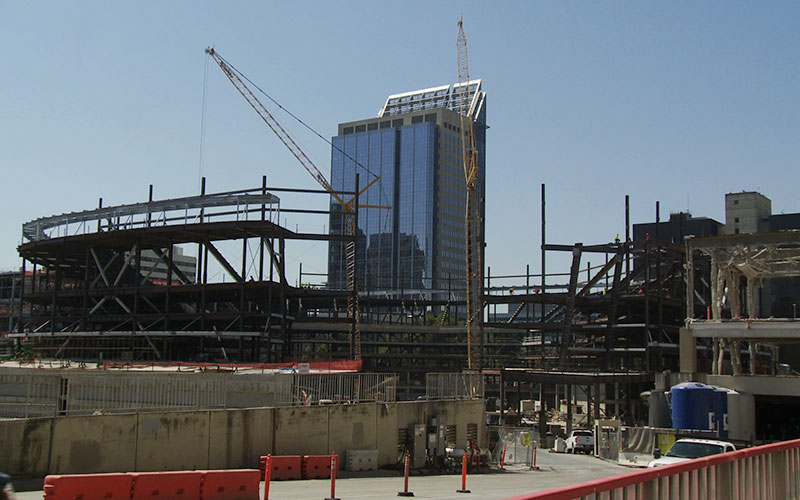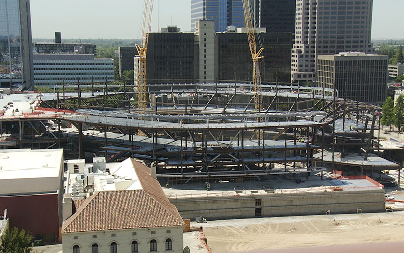 Photo. Construction of the Golden 1 Center in Sacramento, California.
