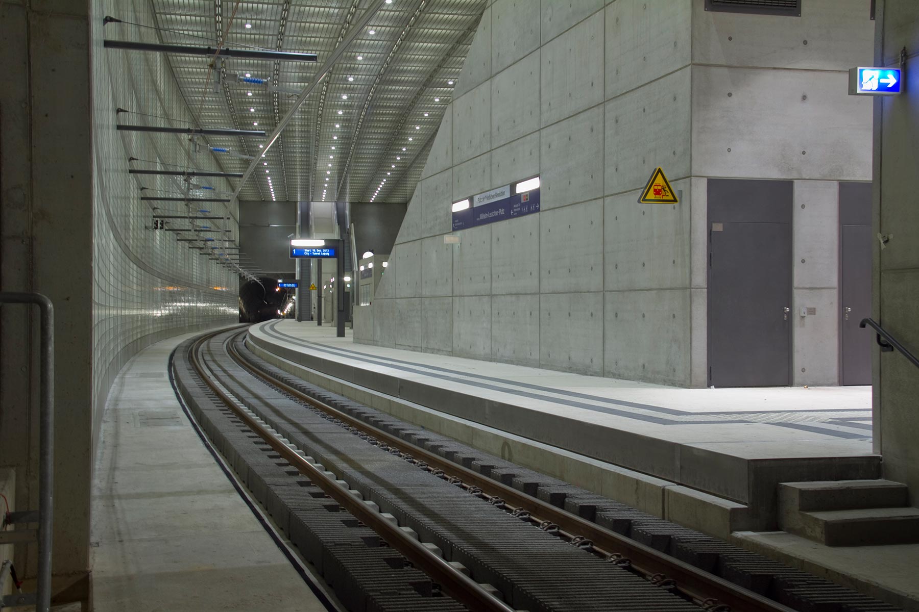 Between 8 to 16 meters (approximately 26 to 52.5 feet) below ground, the new train tracks run along two single-track tunnels each 1,438 meters (4,700 feet) long, with a 7.9-meter (26-foot) internal diameter. CEMEX was able to provide the high level of technical and logistical expertise required by an engineering project of this scale. Our team in Germany supplied more than 350,000 cubic meters (approximately 458,000 cubic yards) of concrete over five years for the project—from underwater concrete for the tunnel floors to self-compacting architectural concrete for the four underground stations.