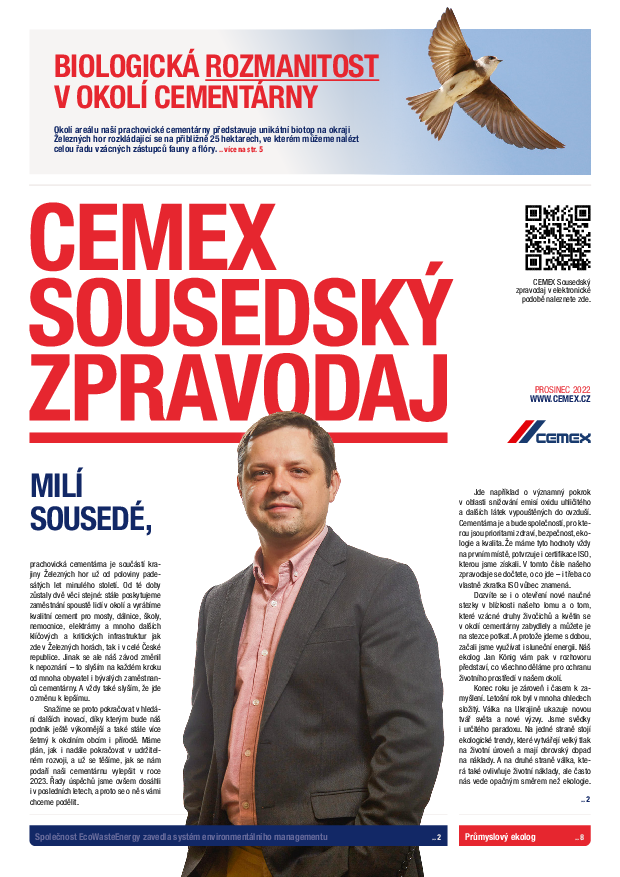 Cemex je globální společnost v oblasti stavebních materiálů, která buduje lepší budoucnost prostřednictvím udržitelných produktů a řešení. Cemex se zavázal k dosažení uhlíkové neutrality díky neustálým inovacím a špičkovému výzkumu a vývoji. Společnost je lídrem v oblasti cirkulární ekonomiky ve stavebnictví a průkopníkem v oblasti využití odpadu a zbytkových materiálů jako alternativních surovin a paliv, a to s pomocí nejnovějších technologií.
