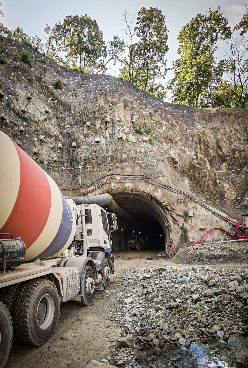 Společnost Cemex dodávala na tuto stavbu vysoce odolné betonové směsi přizpůsobené konkrétním technologickým požadavkům jednotlivých konstrukcí. Beton byl využit nejen při ražbě tramvajového tunelu, který si vyžádal nepřetržité dodávky i během noci, ale i při budování galerií a dalších železobetonových objektů celé komunikace. Součástí projektu byly i mimořádně náročné technologické operace, jako bylo rozpojování skalního masivu pomocí trhavin, zásahy horolezců při zajišťování svahů a nasazení potápěčů při čištění koryta řeky Svratky.